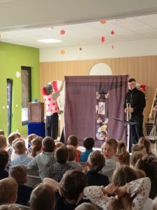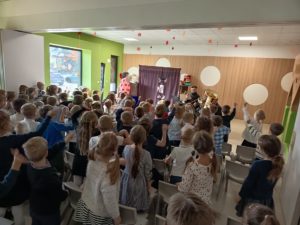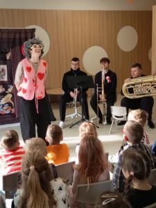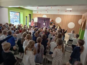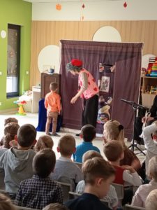 Dnia 05.11.2025 odwiedził nas Teatrzyk " Kulturka" z przedstawieniem "Zakurzony pamiętnik prababci" Główną bohaterką była babcia Genowefa, która czytała swój pamiętnik , gdzie było opisanych mnóstwo historii z codziennego życia, miłości i radości 🙂 Przedstawienie nawiązywało także do odzyskania przez Polskę niepodległości i tego co się działo podczas wojny. Na koniec wszystkie dzieci wspólnie odśpiewały hymn Polski 🙂