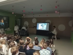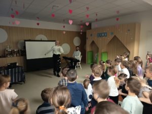 W styczniu nasze przedszkole odwiedził po raz kolejny teatrzyk "Kulturka" z przedstawieniem 'Bajkodzwięki" Bajkodzwięki to dziecięce nieme kino, w którym muzykę na żywo tworzy taper na pianinie, ale też cały zestaw przeszkadzajek i instrumentów perkusyjnych. Wyświetlane na dużym ekranie obrazy dopełniamy muzyką , głosem i dzwiękami, które nie tylko oddają to co dzieje się na ekranie, ale także tworzą emocje i wywołują uśmiech 🙂