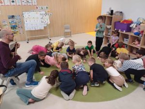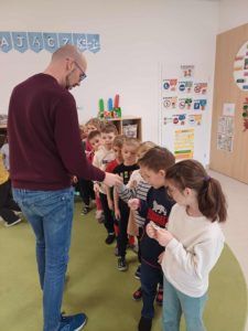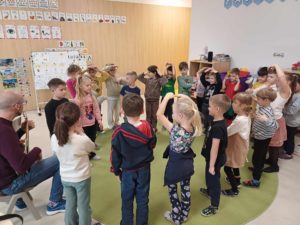 Nasze przedszkole gościło na warsztatach muzycznych Wujka Ogórka. Nasz gość zaraził nas muzyczną pasją oraz pozytywną energią 🙂